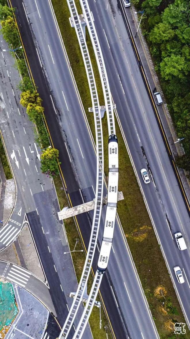 新能源轨道交通“云巴”成为坪山市民代步出行的新选择。无人驾驶的电动车厢在高架轨道上以胶轮行驶,11个站点串起了这座绿色新城的产、城、文,高架敷设方式让乘客得以鸟瞰城市风景。
